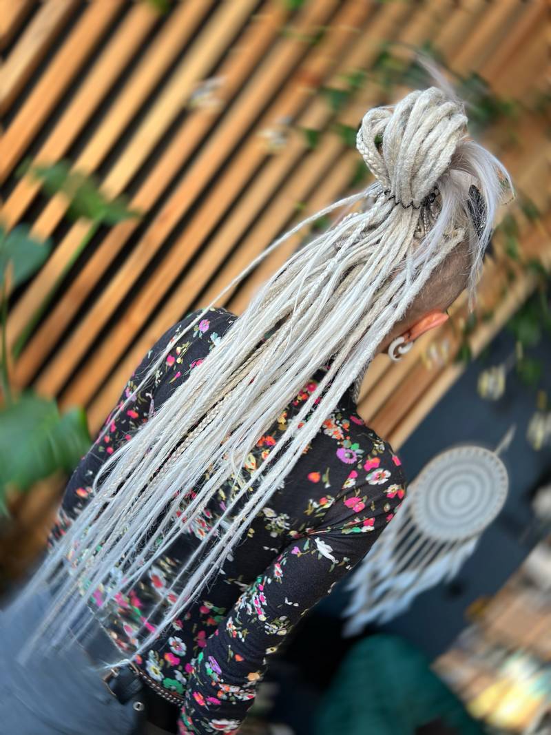 • UWAGA: na jednej z dwóch odnóg każdego dreda/warkocza/loka będą widoczne Twoje naturalne włosy, najlepiej wyglądają więc kolory podobne lub jaśniejsze niż oryginalne włosy.
